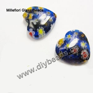bead,millefiori glass,cobalt blue/yellow/red/white ,12x12x4mm flat heart,approximately 31ps/strand