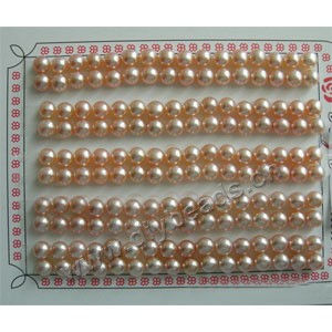 pearl, cultured freshwater ,peach,5-5.5mm half-drilled button, AAA grade.Sold per pkg of 80 pairs