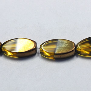 Bead ,copper-plated glass, amber, 19x10mm flat oval. Sold per pkg of ten 31cm strand.